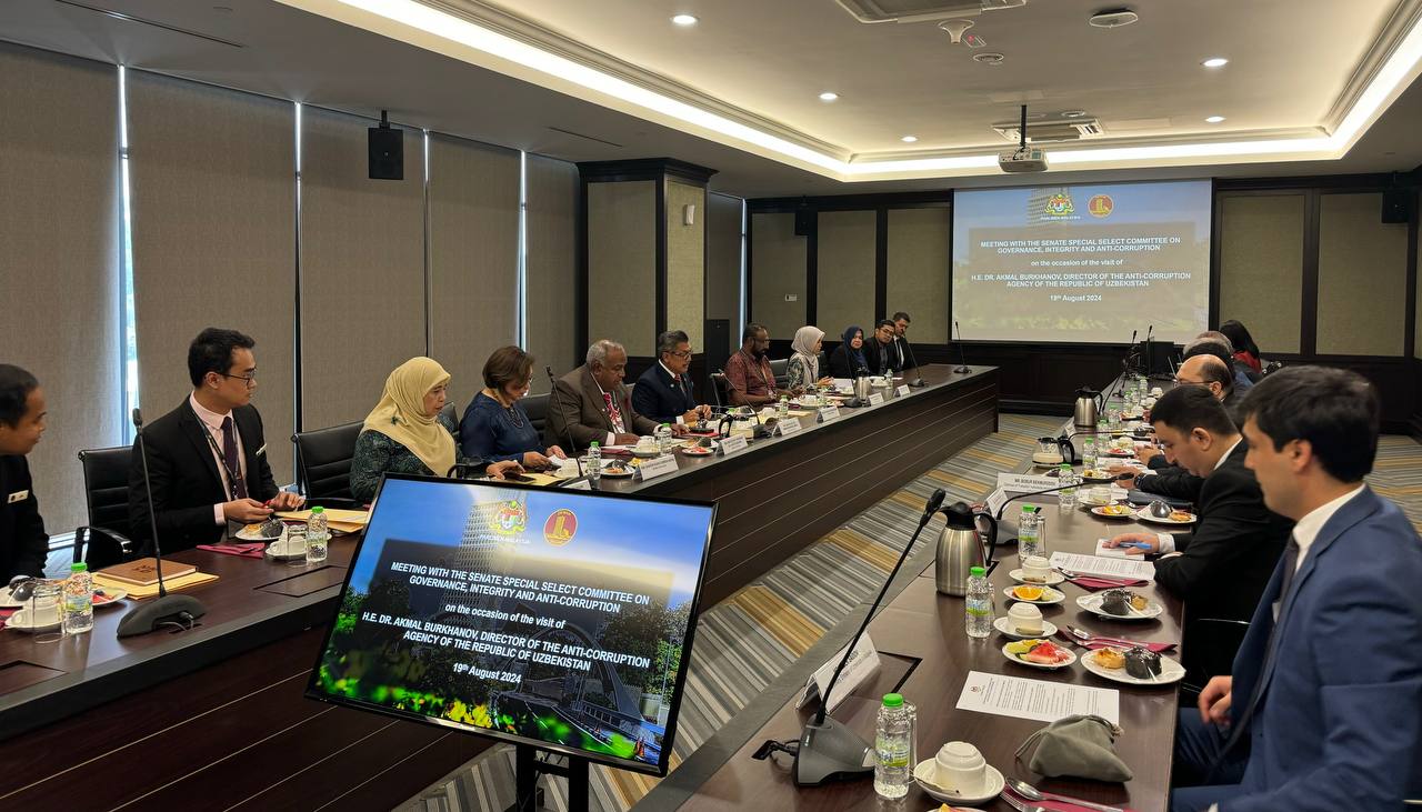 Xususan, Malayziya Parlamenti Senati aʼzosi, Senatning Davlat boshqaruvi, halollik va korrupsiyaga qarshi kurashish bo‘yicha maxsus qo‘mitasi raisi Arman Azxa Abu Xanifa bilan uchrashuvda korrupsiyaga qarshi samarali kurashishni taʼminlashda shaffof va hisobdor davlat boshqaruvi tizimini shakllantirishda parlamentning o‘rni, ikki mamlakatning bu boradagi tajriba va yondashuvlari xususida o‘zaro fikr almashildi.