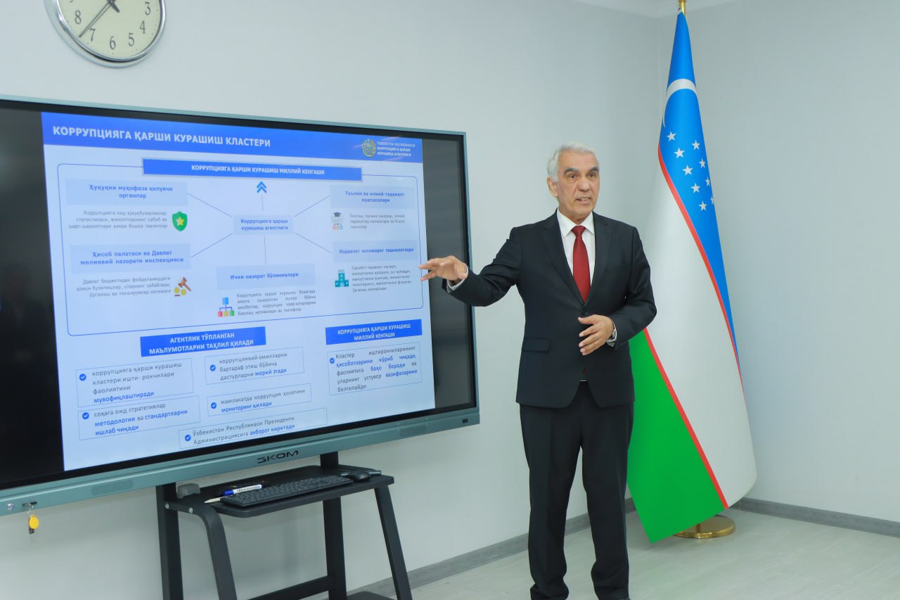 Joriy yilning 7-yanvar kuni Korrupsiyaga qarshi kurashish agentligida "O‘zbekiston Respublikasida korrupsiyaning oldini olish va unga qarshi kurashish tizimini yanada takomillashtirish to‘g‘risida"gi Prezident Farmoni mohiyati va ahamiyati to‘g‘risida amaliy muloqot o‘tkazildi.