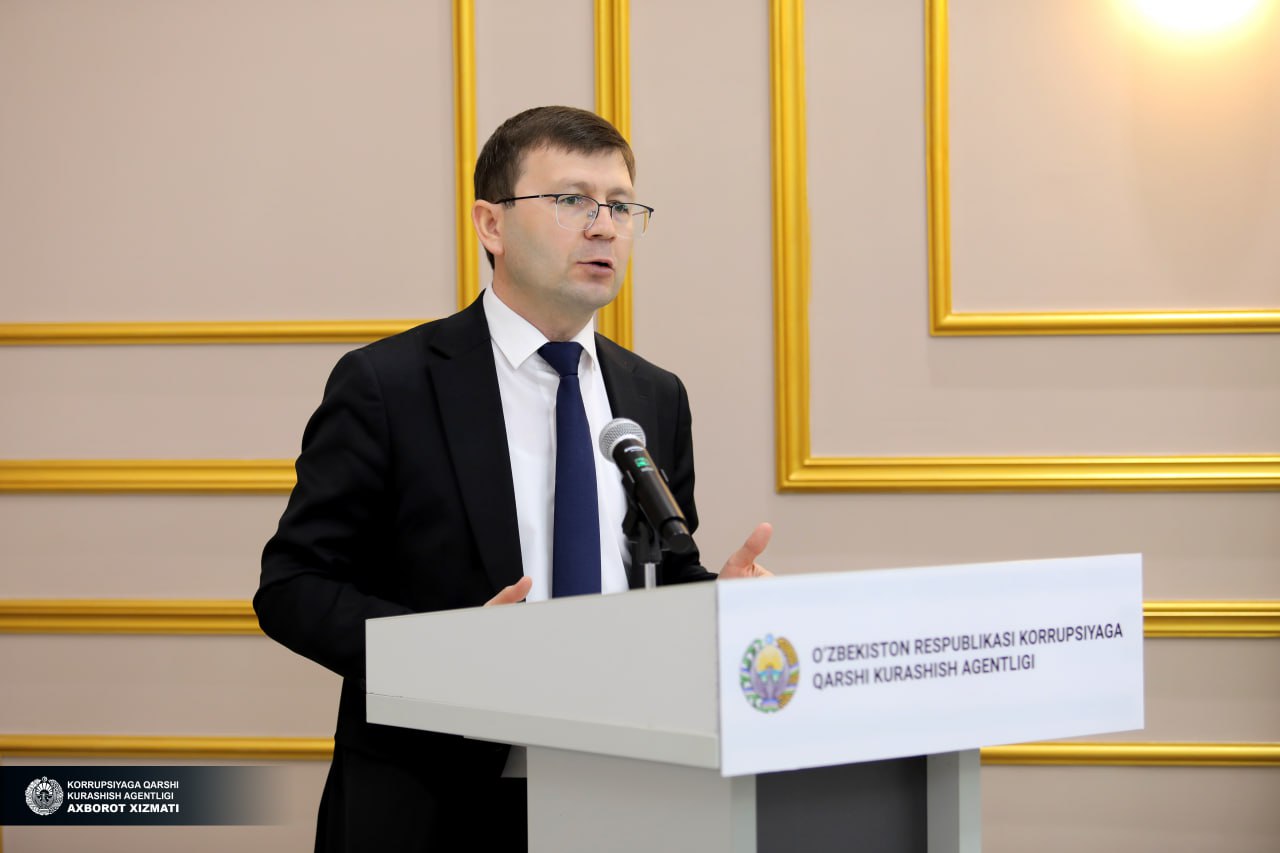 В начале заседания директор Агентства по противодействию коррупции Акмаль Бурханов рассказал о положительных результатах, достигнутых в обеспечении открытости в нашей стране, принятых мерах по оценке Индекса открытости в 2023 году, цифровизации процессов оценки.