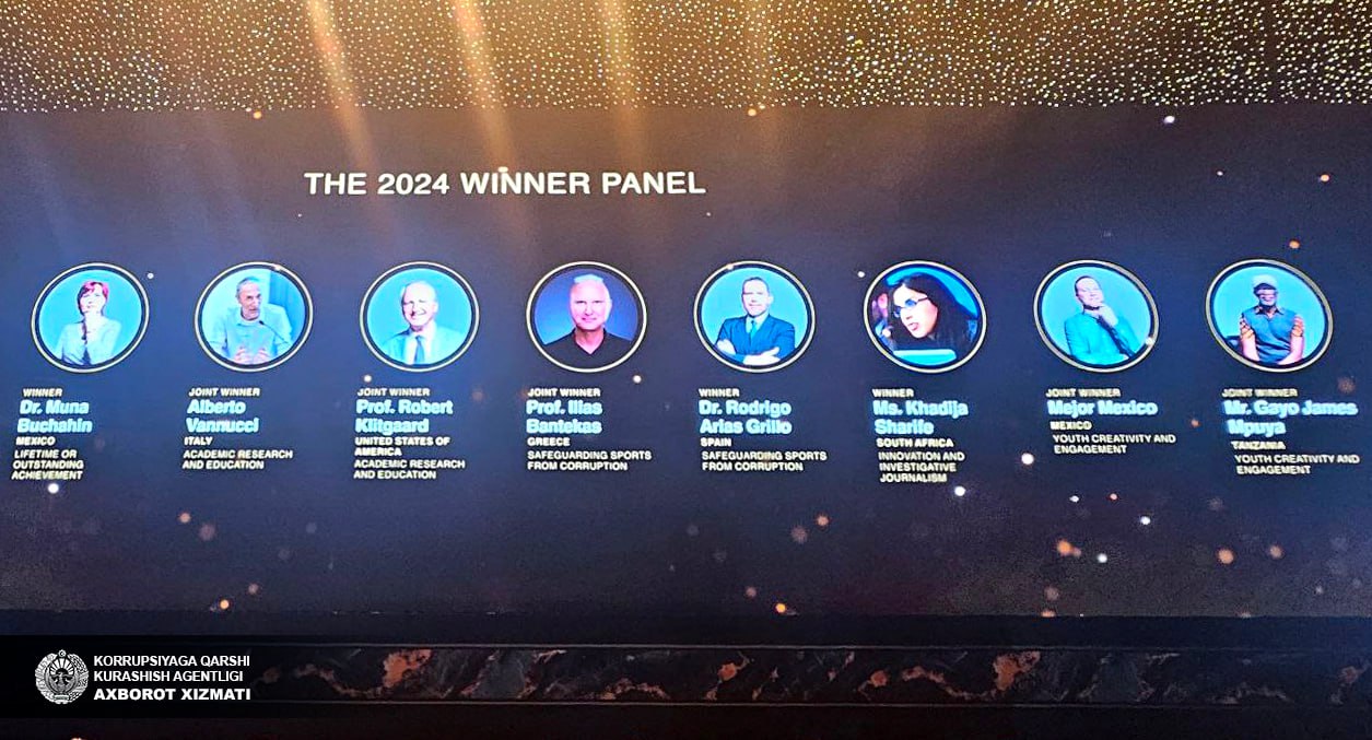 Для сведения: В прошлом году впервые в Ташкенте состоялась торжественная церемония вручения Международной премии за высокие заслуги в борьбе с коррупцией, учреждённой эмиром Катара Шейхом Тамимом бин Хамадом Аль Тани.