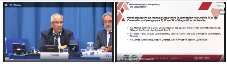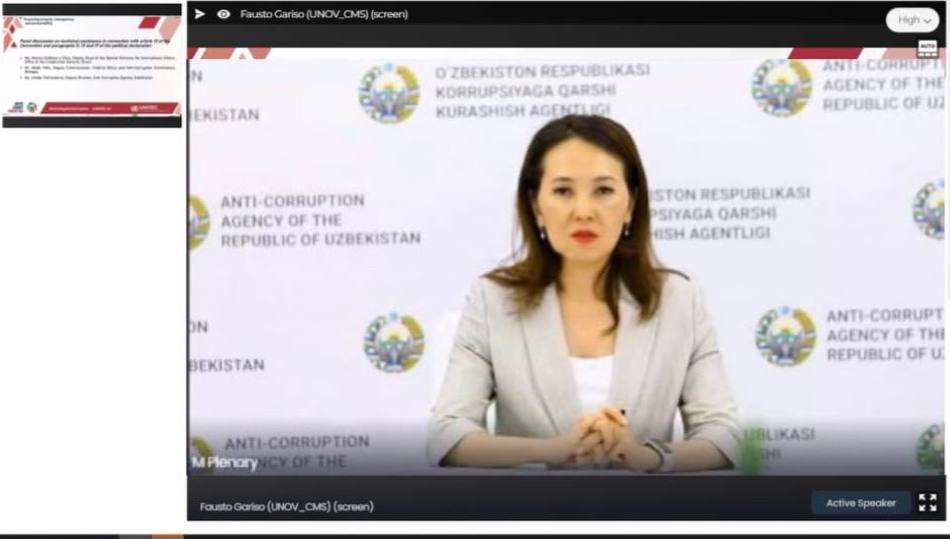 Umida Tukhtasheva provided detailed information on the implementation in Uzbekistan of Article 12 of the Convention (Private Sector) and the relevant paragraphs of the Political Declaration, approved by the Resolution of the UN General Assembly on June 2, 2021.