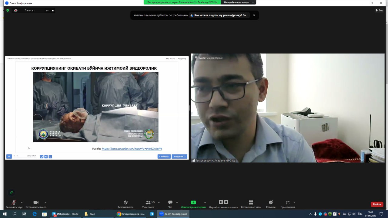Seminarda Huquqni muhofaza qilish akademiyasi bo‘lim boshlig‘i X.Tursunbekov “O‘zbekiston Respublikasi qonunchiligida korrupsiya uchun javobgarlik” masalalari bo‘yicha taqdimot qildi.