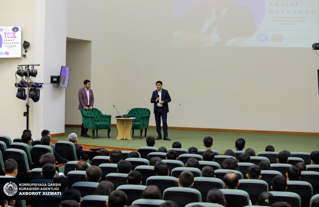 Joriy yilning 5-aprel kuni Korrupsiyaga qarshi kurashish agentligi direktori A.Burxanov TSUL TALKS (TED) loyihasining mehmoni bo‘ldi.