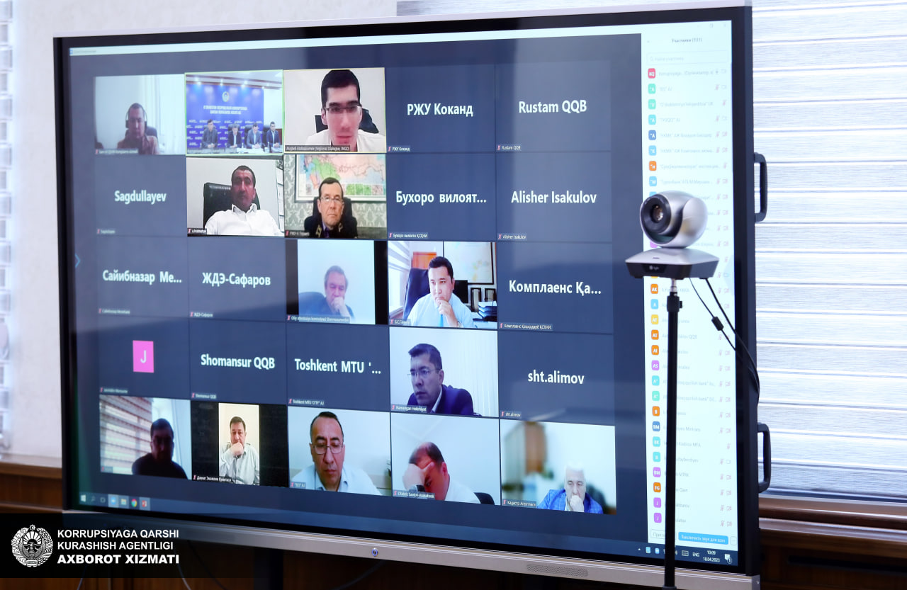 Кроме того, специалисты Агентства предоставили информацию о результатах оценки коррупционных рисков в государственных органах и организациях, их региональных и структурных подразделениях, а также обсудили недостатки в оценке коррупционных рисков в организациях и внесения информации в электронную площадка e-anticor.uz.