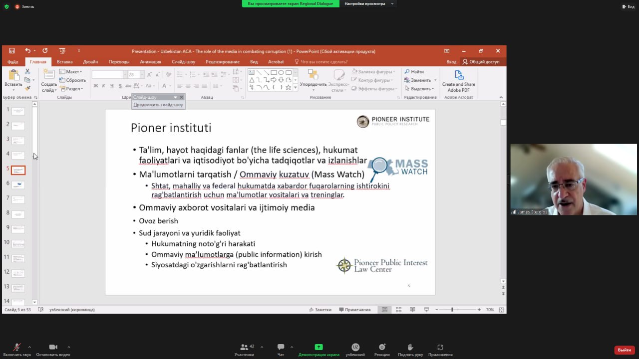 Маълумот учун: “Пионер” коррупцияни ўрганиш бўйича тадқиқот институти Массачусетс штатининг Бостон шаҳрида жойлашган бўлиб, асосий мақсадларидан бири коррупцияга қарши курашиш ва унинг олдини олиш.